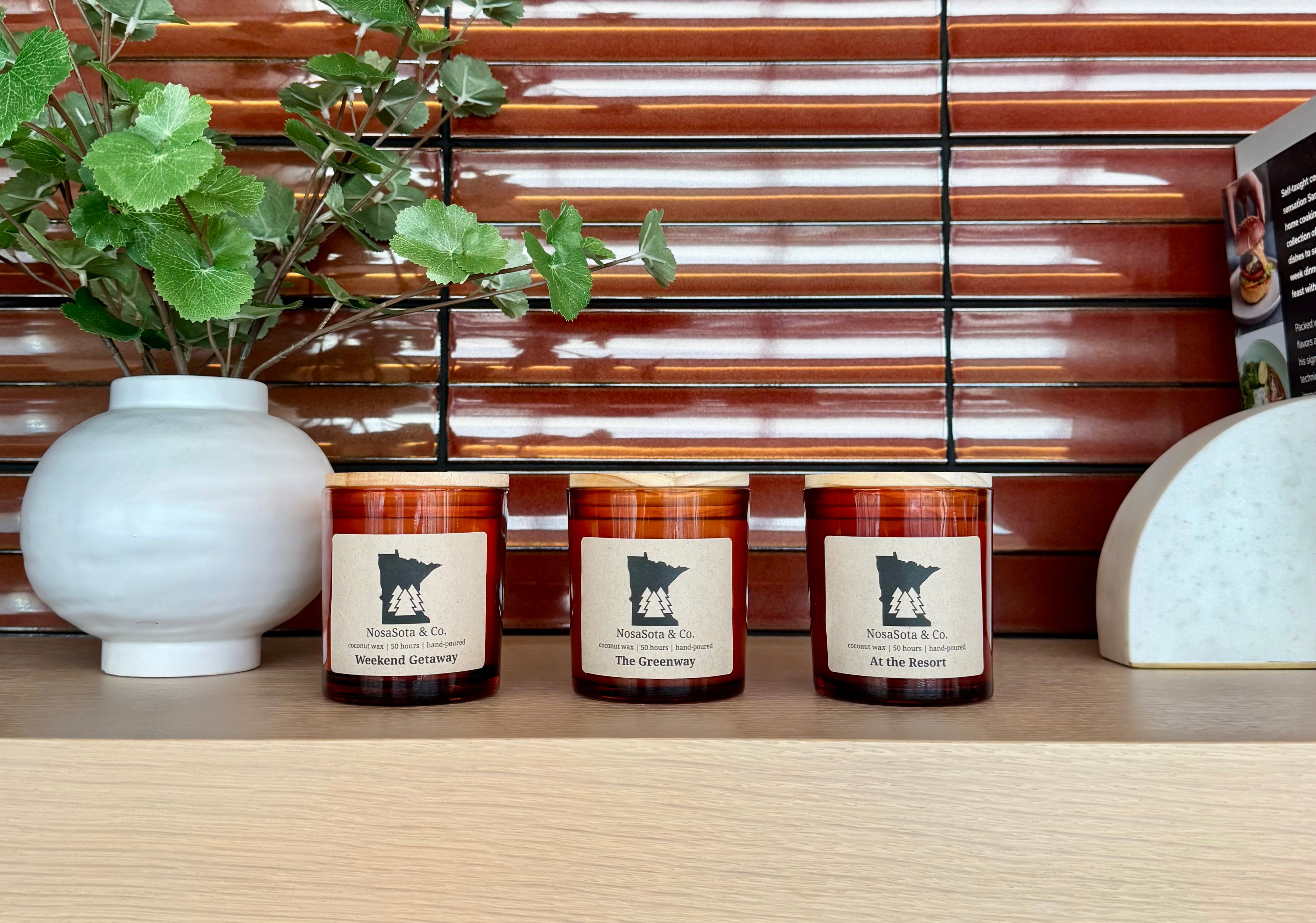 All candles are hand-poured in Minneapolis, Minnesota, inspired by places and experiences throughout the Land of 10,000 Lakes. They are made from a coconut wax blend and infused with natural fragrances, offering a burn time of up to 50 hours. For peace of mind, all of my candles are phthalate-free, Prop 65 compliant and meet I.F.R.A. (International Fragrance Association) standards, ensuring they’re safe, high-quality, and responsibly crafted.